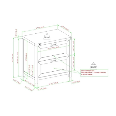 • Weight capacities: Top surface 125 lbs., drawers 15 lbs. each